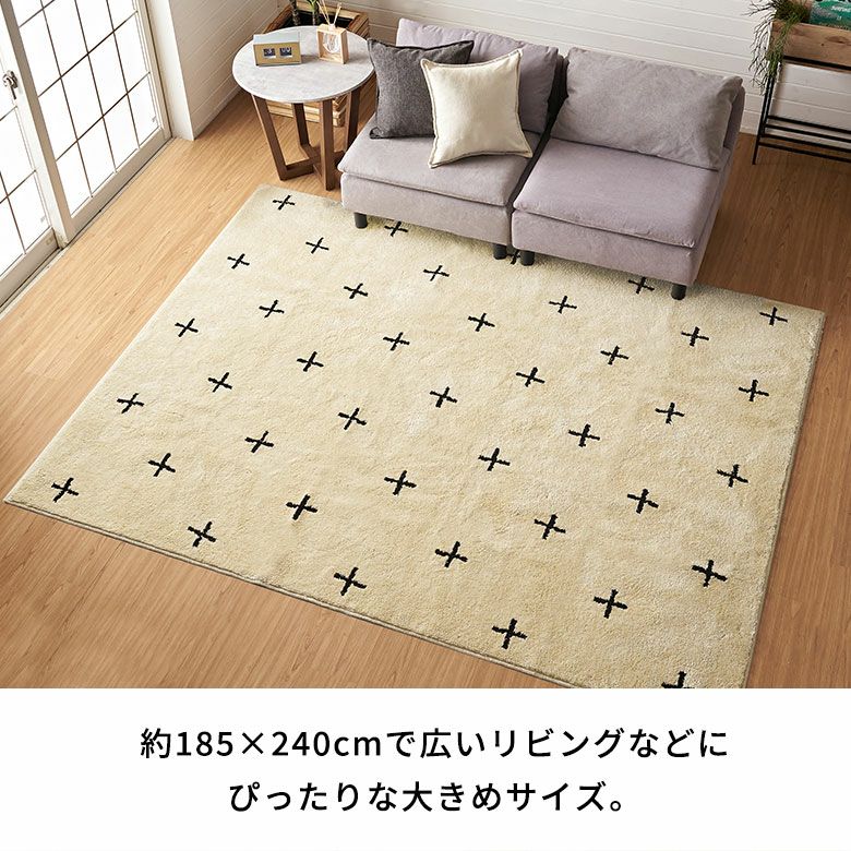 約185×240cmで広いリビングなどにぴったりな大きめサイズ。