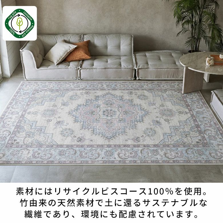 LivaEco™認証済みのリサイクルビスコース100%を使用したサステナブルラグです。