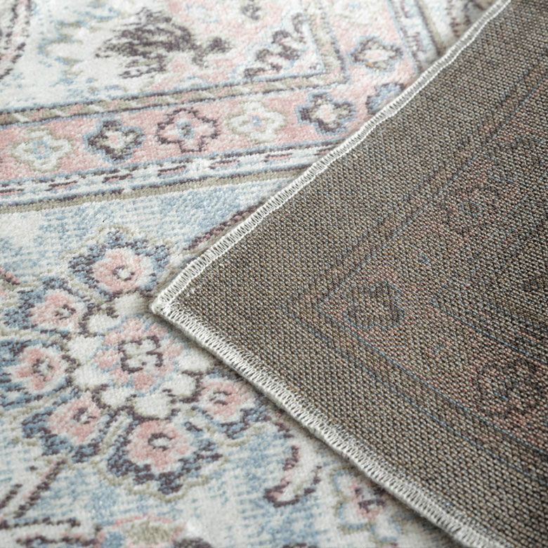 ヨーロッパらしい洗練されたデザインと美しい発色が魅力のRAGOLLEモケット織りラグ。ベルギー伝統の技術で丁寧に織り上げ、445,250ノットの高密度仕上げにより、繊細な柄と高い耐久性を実現しています。色合いはアイボリーを基調に、淡いブルーとピンクで繊細にモチーフを描いた上品で柔らかなトーン。中心の大きなメダリオンと細部にまであしらわれたフラワーモチーフ、そして優美に重なり合う色彩がクラシックで格式高い印象を演出。
