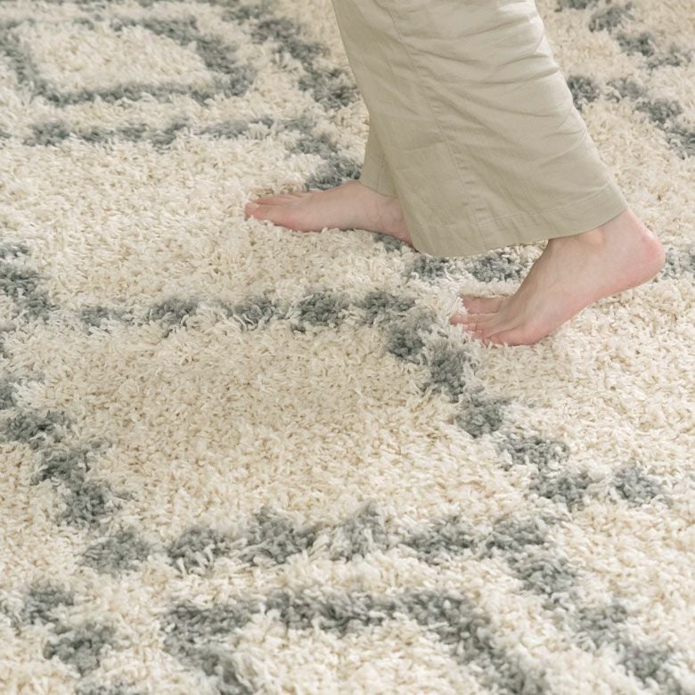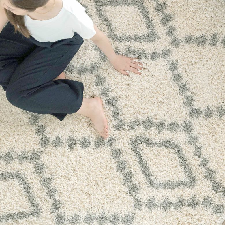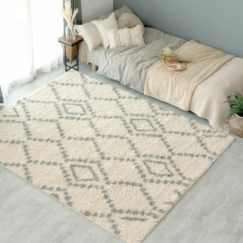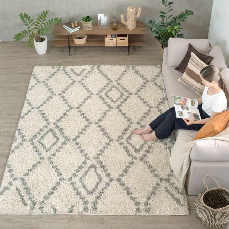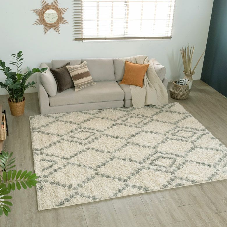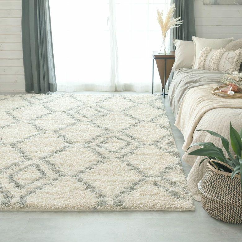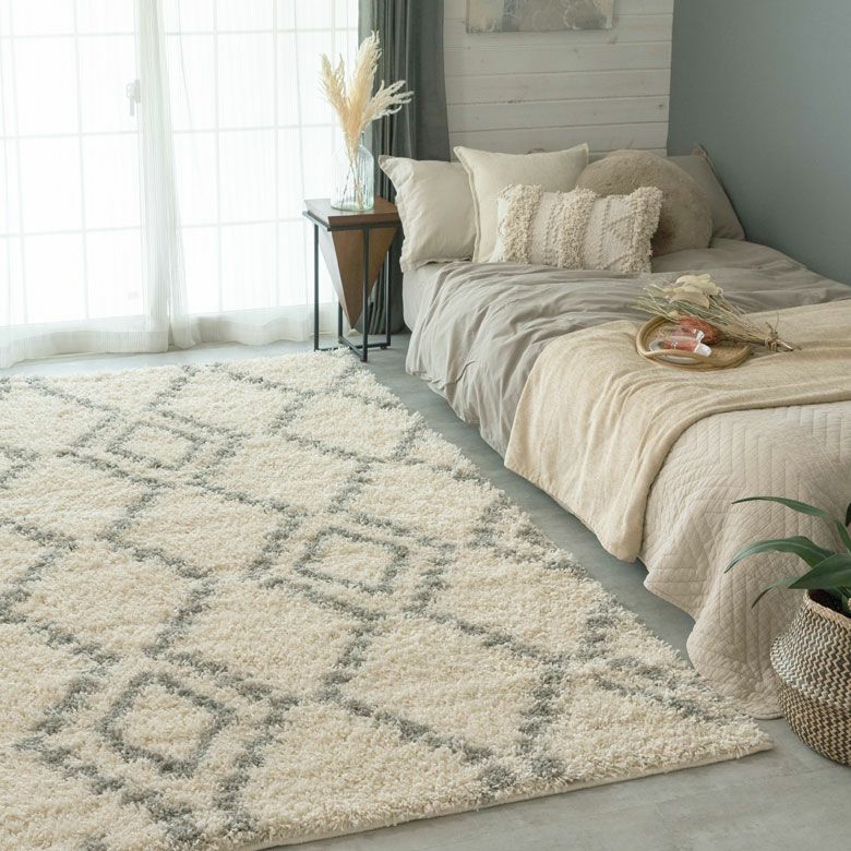 思わずひとめぼれしてしまいそう。大注目のデザイン、ベニオワレン風のラグ。 モロッカンコーデや西海岸スタイルなど、旬のお部屋のアクセントにぴったり。 デザインだけでなく、長めの毛足がふんわり気持ち良く、 ラグの上でごろんと寝転びたくなる心地良さも魅力的。 そして、オールシーズン使える万能さで、大活躍の予感! ひとまわり小さいサイズもこちらで取扱いしております。