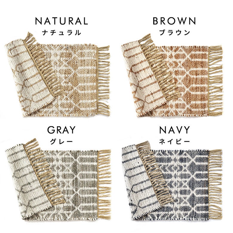 ふんわり感触×甘辛ジオメトリック柄 シェニールコットン&ジュートラグ [ 約50×80cm ]
