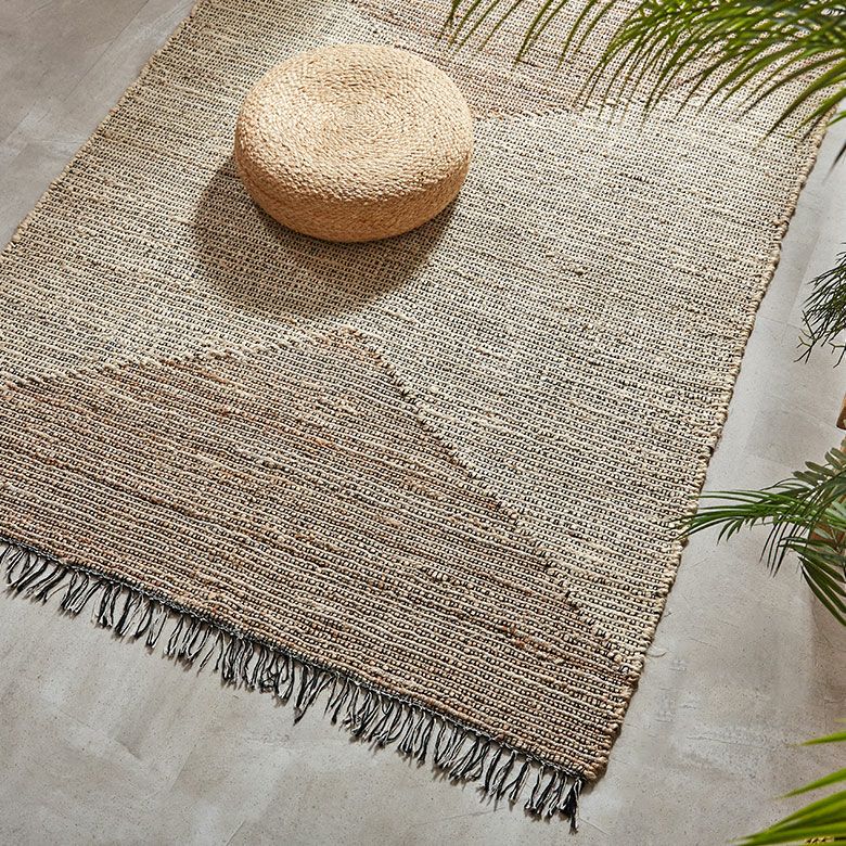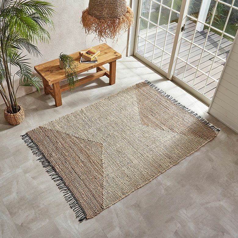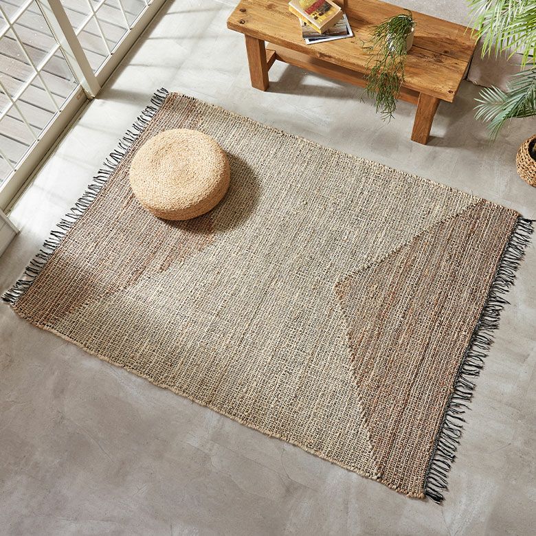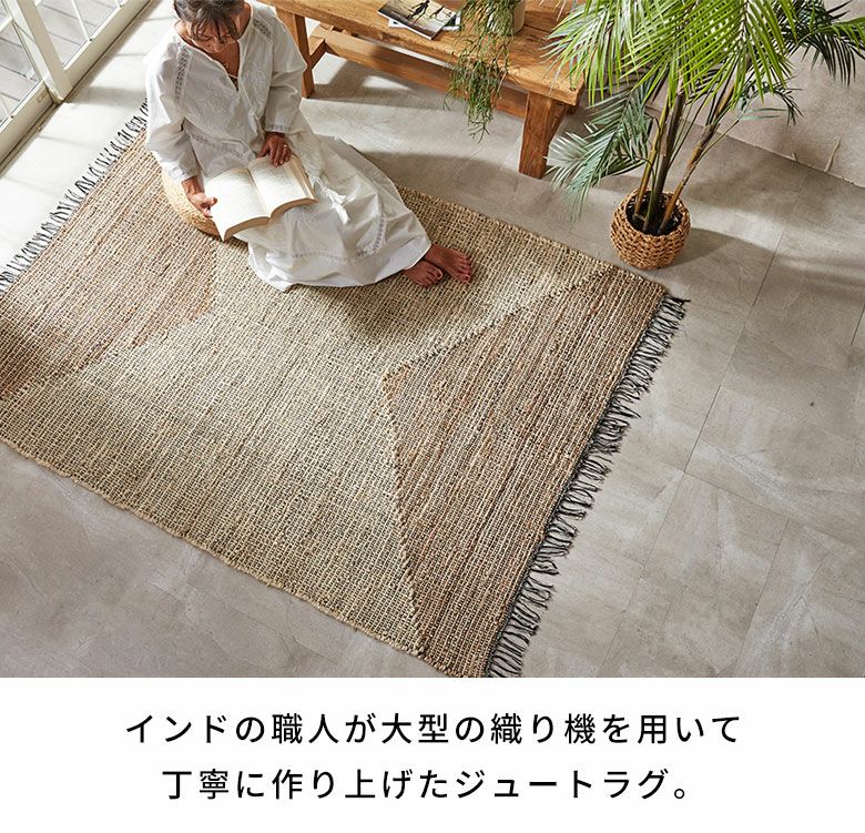 天然素材のジュートを使用したハンドメイドのラグは、自然素材の家具やウッド系のインテリアと相性が抜群。