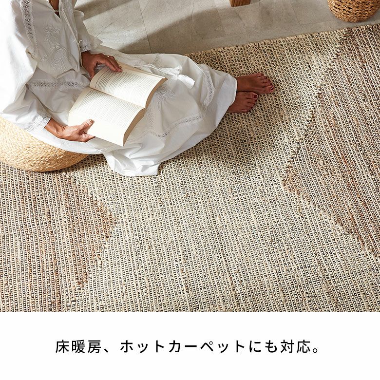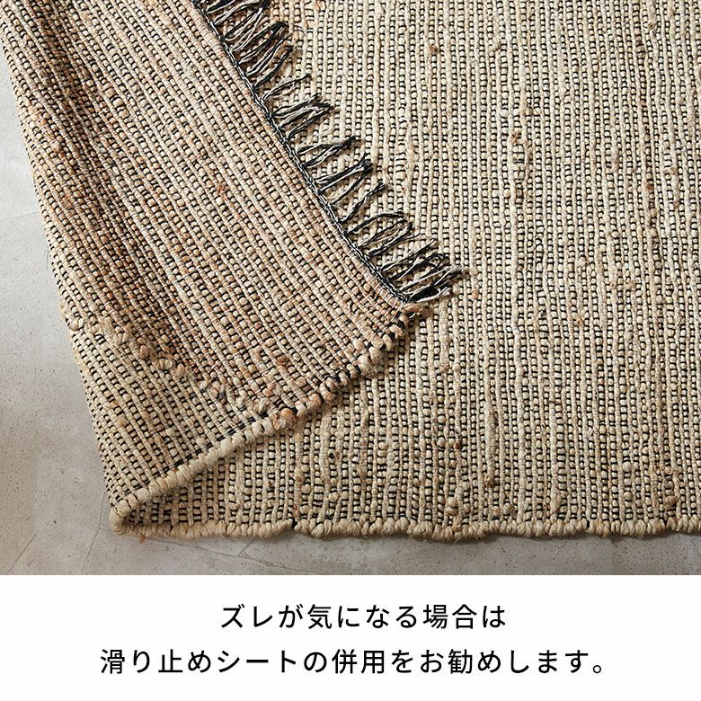 ※硬いジュートの繊維が織り込まれている場合がこざいます。素足でのご使用や小さなお子様がご使用になる際は十分にお気をつけ下さい。これはジュートの根の部分であり、素材の特性上どうしても混じってしまうもので不良品ではございません。天然素材の風合いとしてご理解頂きますようお願い致します。
