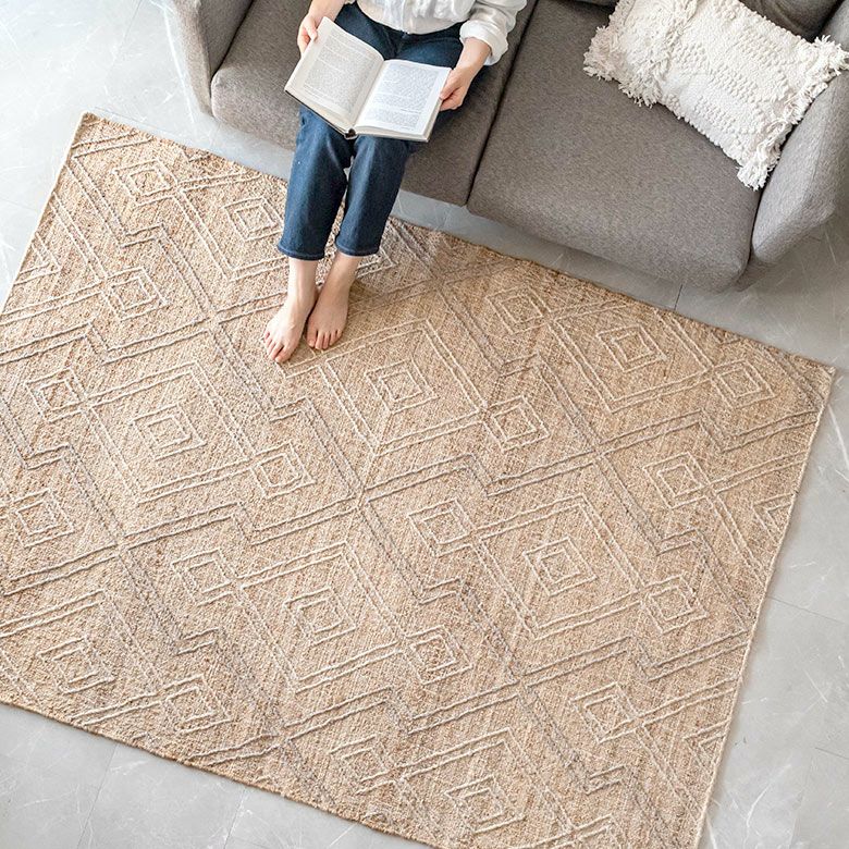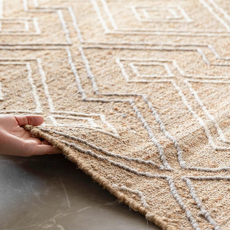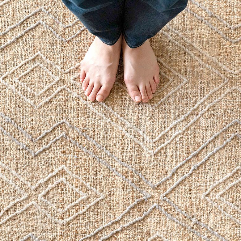 素朴でざっくりと織られたやさしい風合いのデザインラグ。 通気性の良いジュートにウールを織り交ぜており、 柔らかな肌さわりで季節を問わず快適にお使いいただけます。