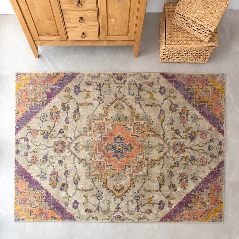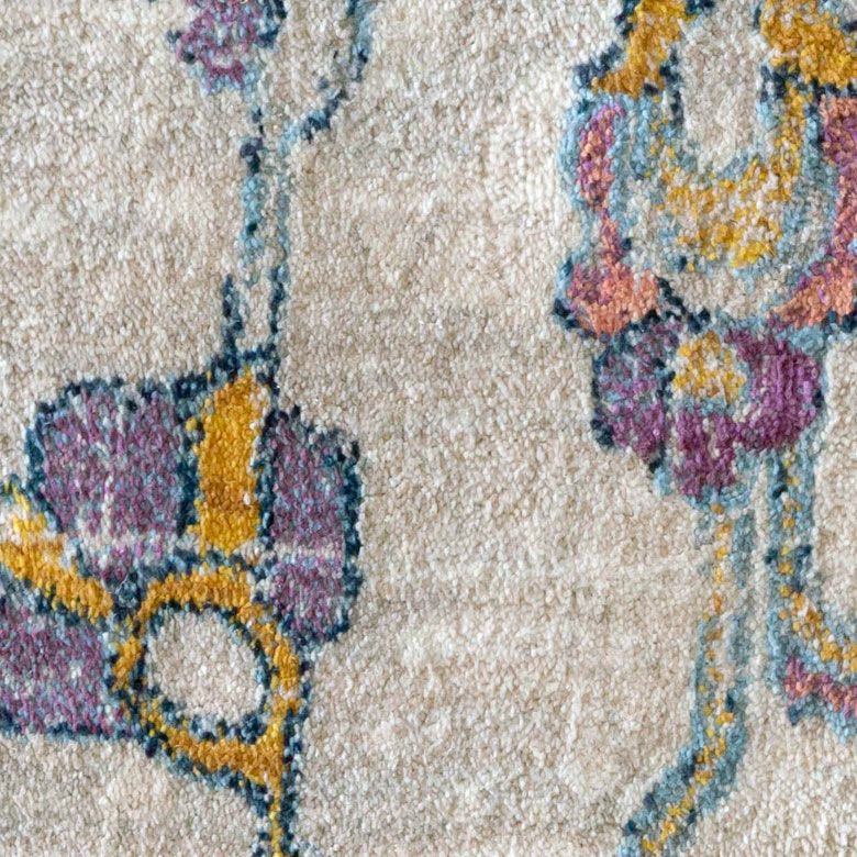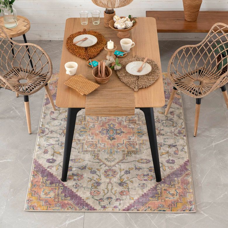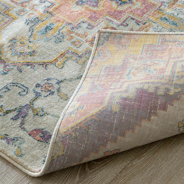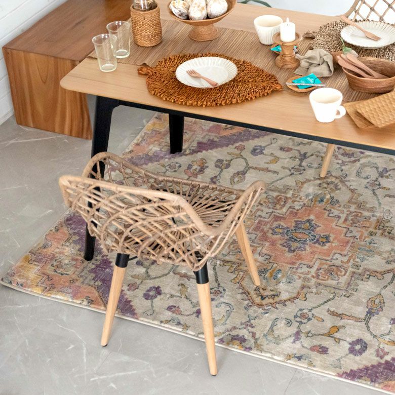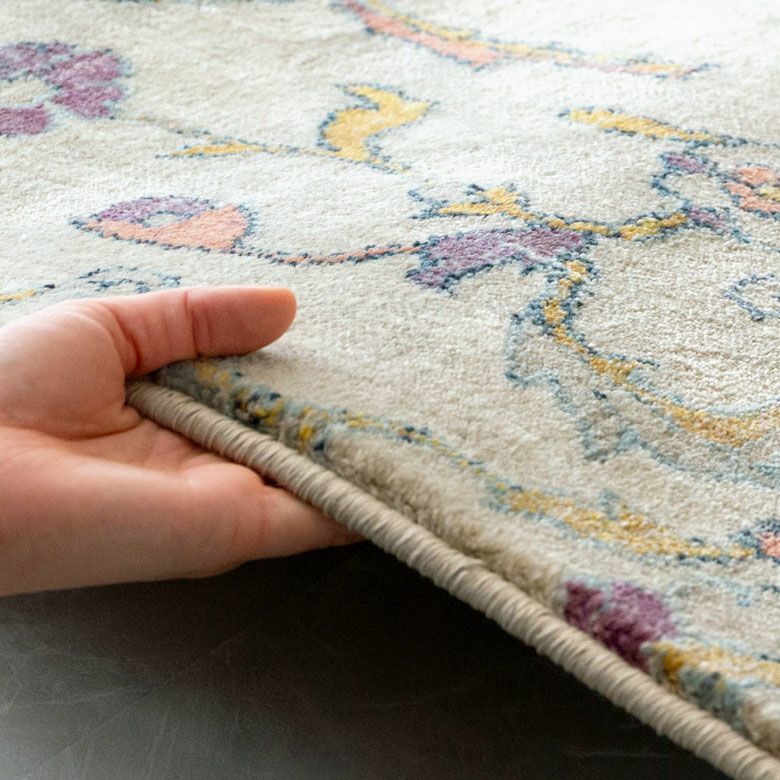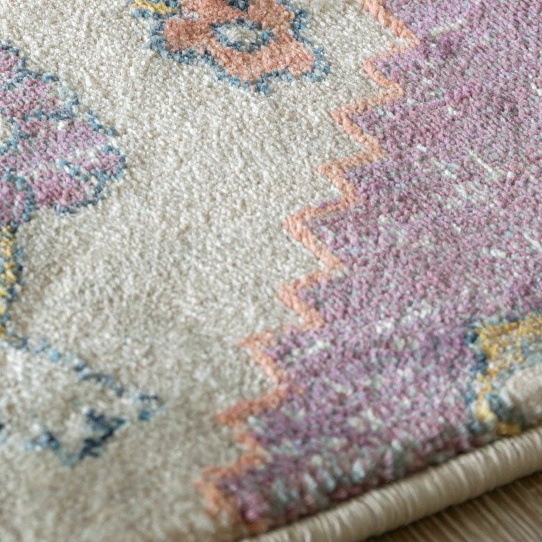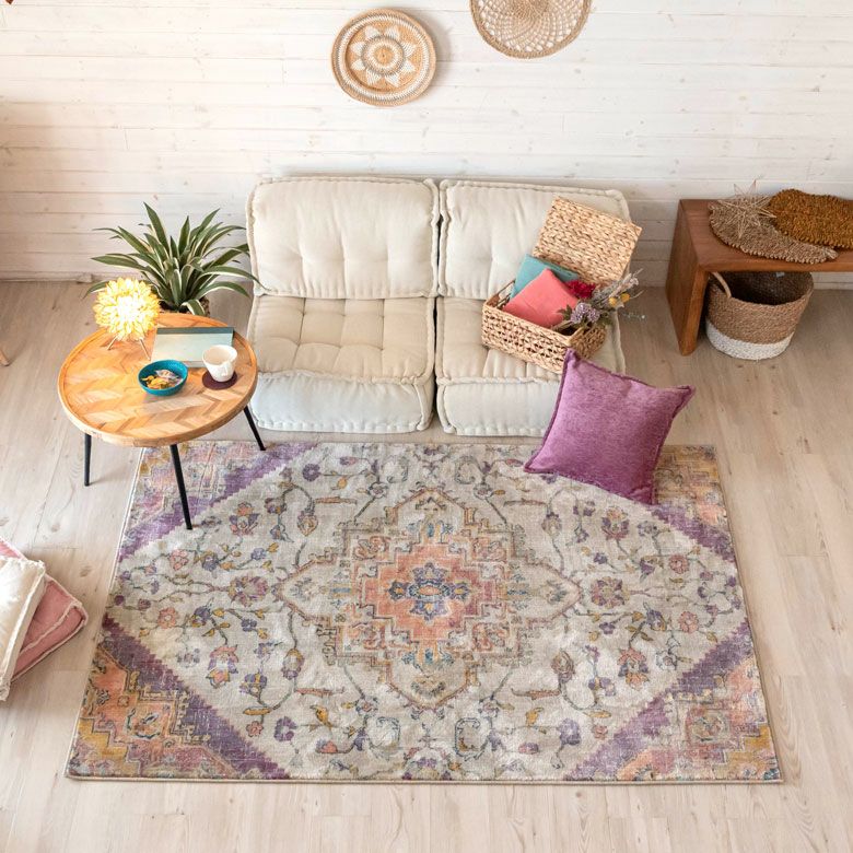 中央にあるメダリオンのシンボルと、華やかに舞うフラワー柄にひとめぼれ! エキゾチックなデザインラグで、お部屋を彩り豊かにアップグレード。 「高密度ウィルトン織り」の魅力を活かし、かすれたようなアンティーク感を表現しました。 エスニックからボヘミアン、モロッカンなど、幅広いスタイルでのコーディネートが楽しめそう。 短めの毛足ですが、ふんわりやわらかく心地よい感触。 リビングからダイニング、ベッドルームまで、そしてオールシーズン活躍すること間違いなしのラグカーペットです。