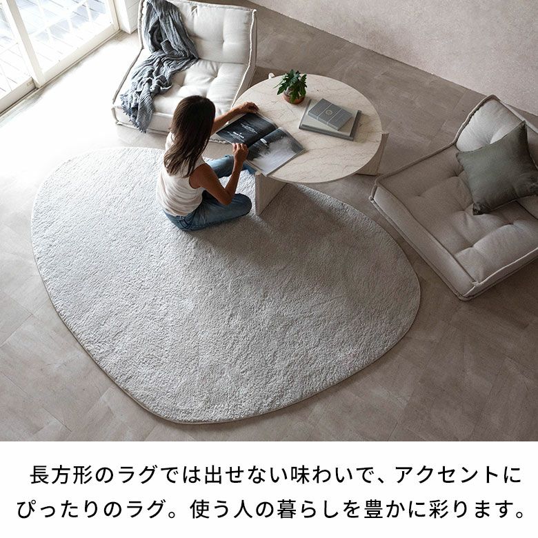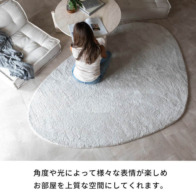 毛足が長く柔らかい肌触りが特徴のタイプなので、寝室やベッドサイドなどリラックスしたい空間にぴったり。
