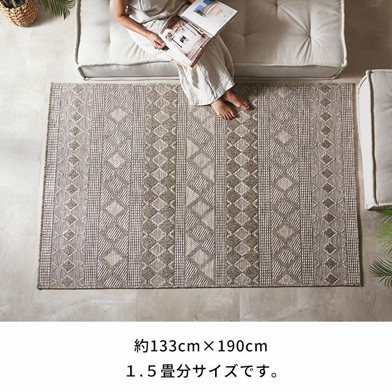 ・リビングはもちろん、ダイニングテーブル下など幅広くお使いいただけるサイズ(約133×190cm)