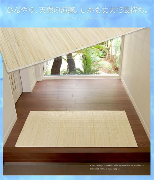 志向のカーペットです。 お手入れはとっても簡単で籐の表面は汚れをはじくので掃除機で十分。使っていくうちにツヤが増し