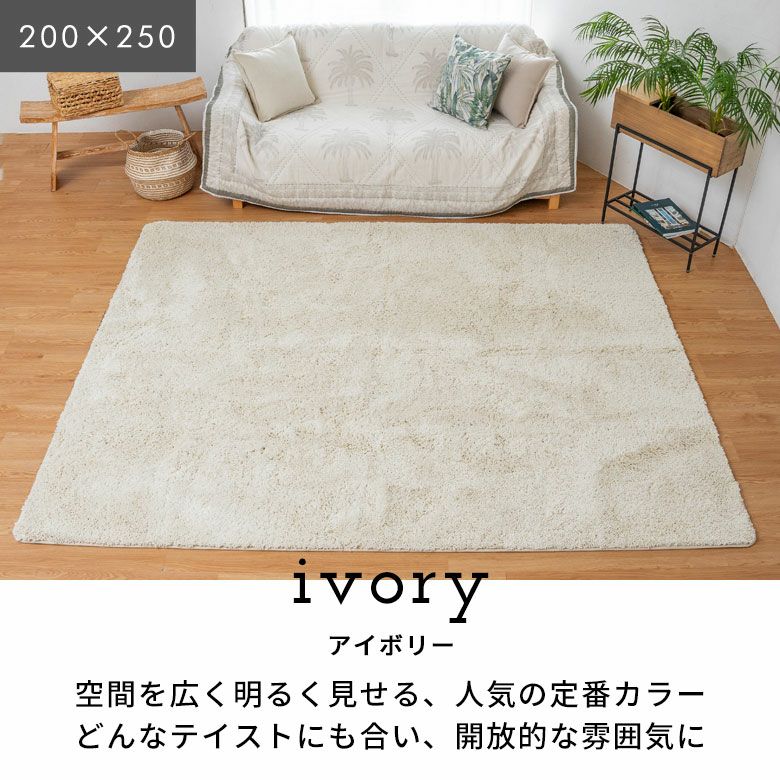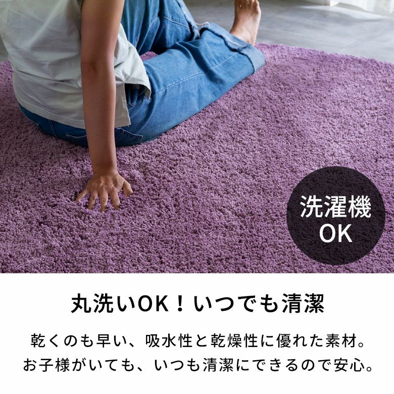 肌に触れると、さらさらの質感が気持ち良いシャギーラグ。