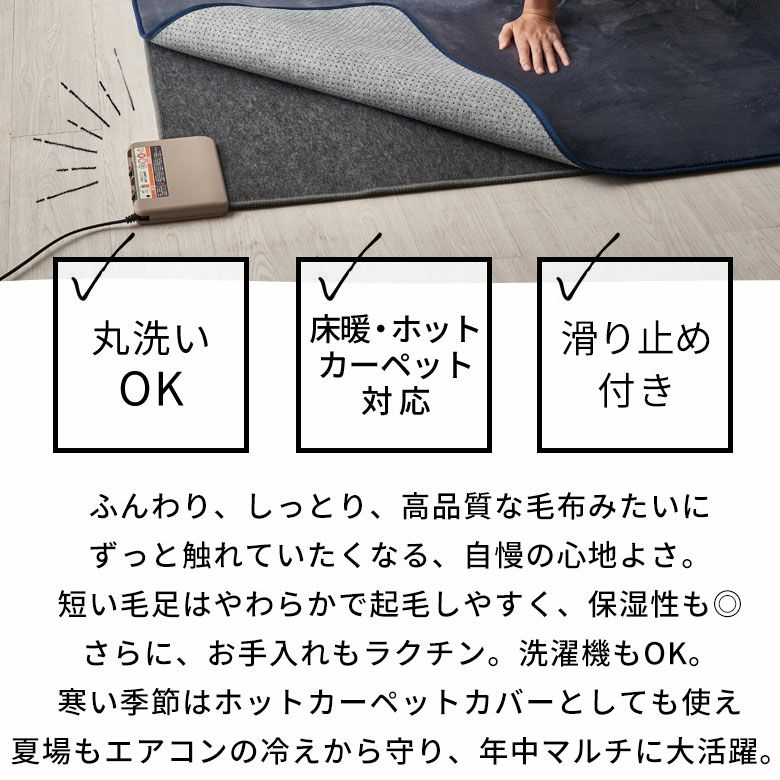 フランネルラグの特長です。いろんな表情をお楽しみください。