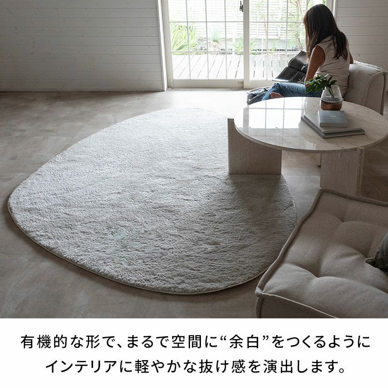 マイクロファイバーで作られた長い毛足のシャギーラグ。