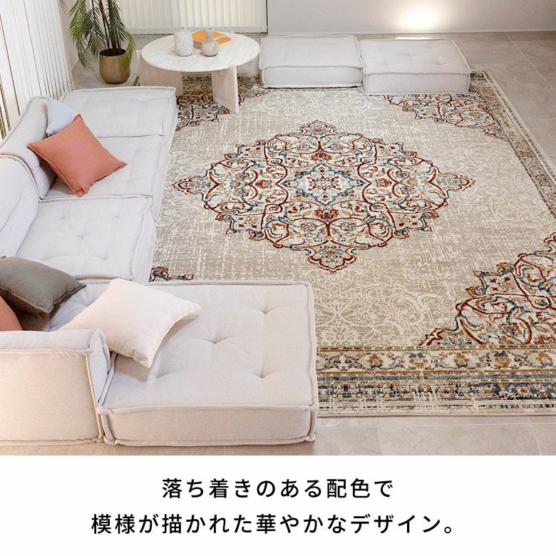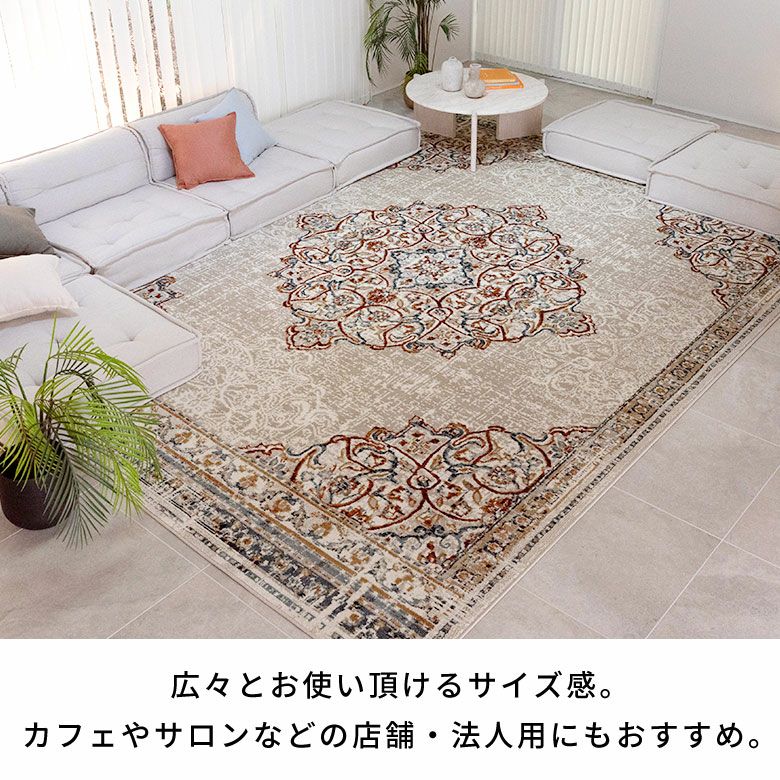 ヴィンテージラグの風合いを“手軽に・清潔に”楽しめる ペルシャ絨毯風ウォッシャブルラグマット!リビングをおしゃれに彩るオリエンタル柄 床暖房対応で年中快適 滑り止め付き 長年使いこんだようなかすれを再現したアンティーク風デザインのおしゃれなラグカーペット/約200x250cm 洗濯機で丸洗いOK 薄手で簡単お掃除&一年中使える 軽くて畳めてラクラク収納ラグマット [84401-c]