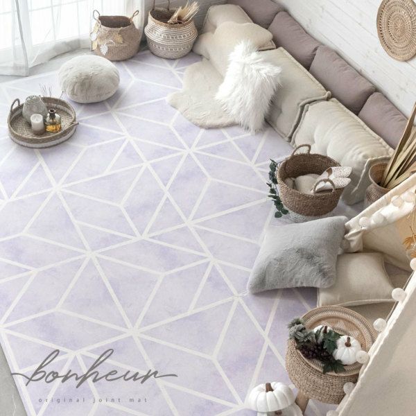 マット カーペット ジョイント 子供 キッズ 衝撃吸収 かわいい ジョイントマット プレイマット 約 W 60cm × D 60cm × H 1.2cm フロアマット ベビーマット ベビー 赤ちゃん [84082-a-nv]【 厚手 大判 防音 撥水 子供部屋 キッズルーム 北欧 シャビーシック おしゃれ サイドパーツ付 正方形 EVA アジアン雑貨 エスニック BOHO 】