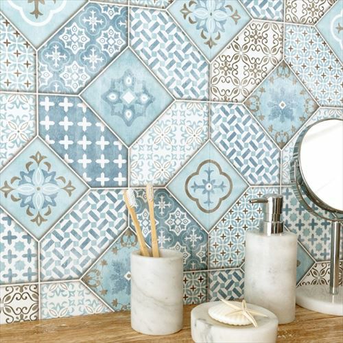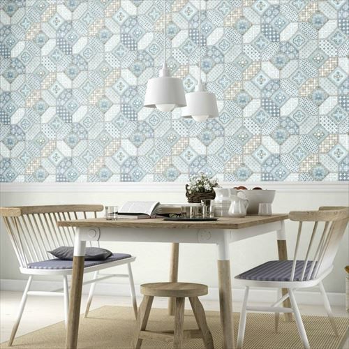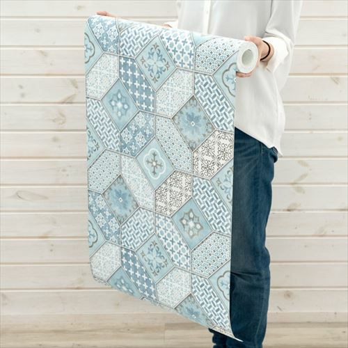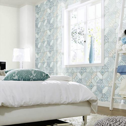 流行りのモロッカンタイルを爽やかなカラーリングで再現した、フェイク壁紙。 エキゾチックなインテリア小物や家具と相性抜群。 立体感があり、少し落ち着きのある色合いのデザインは、 ワンポイント使いだけでもお部屋をセンスアップしてくれます。