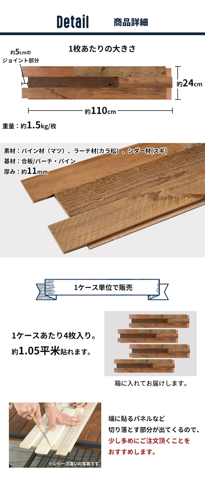エイジドウッド・ウォールパネルは 端材を1枚のパネルにまとめ、 時短でサクサク貼っていける、 DIY向けの壁材です。