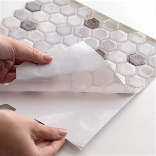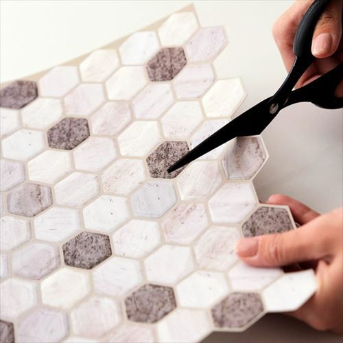 モザイクタイルシールは、キッチン・洗面所・トイレなど 模様替えに最適の、タイル柄リメイクシート。 ツルツルとした表面と、立体感のあるデザインが本物のタイルのよう! でもタイルより軽いのでラクラク&簡単に貼り付けることが出来ます。 シール状なので、台紙をめくって貼り付けるだけ。 のりやボンド等の接着剤や、目地材などは一切必要ありません。 ちょっとしたスペースや小物に貼って、 気軽にデコレーションできるDIYアイテムです。