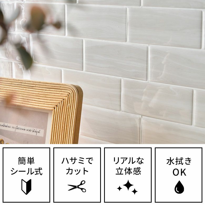 ペタッと貼るだけ、水拭きOKの立体的なタイルシール