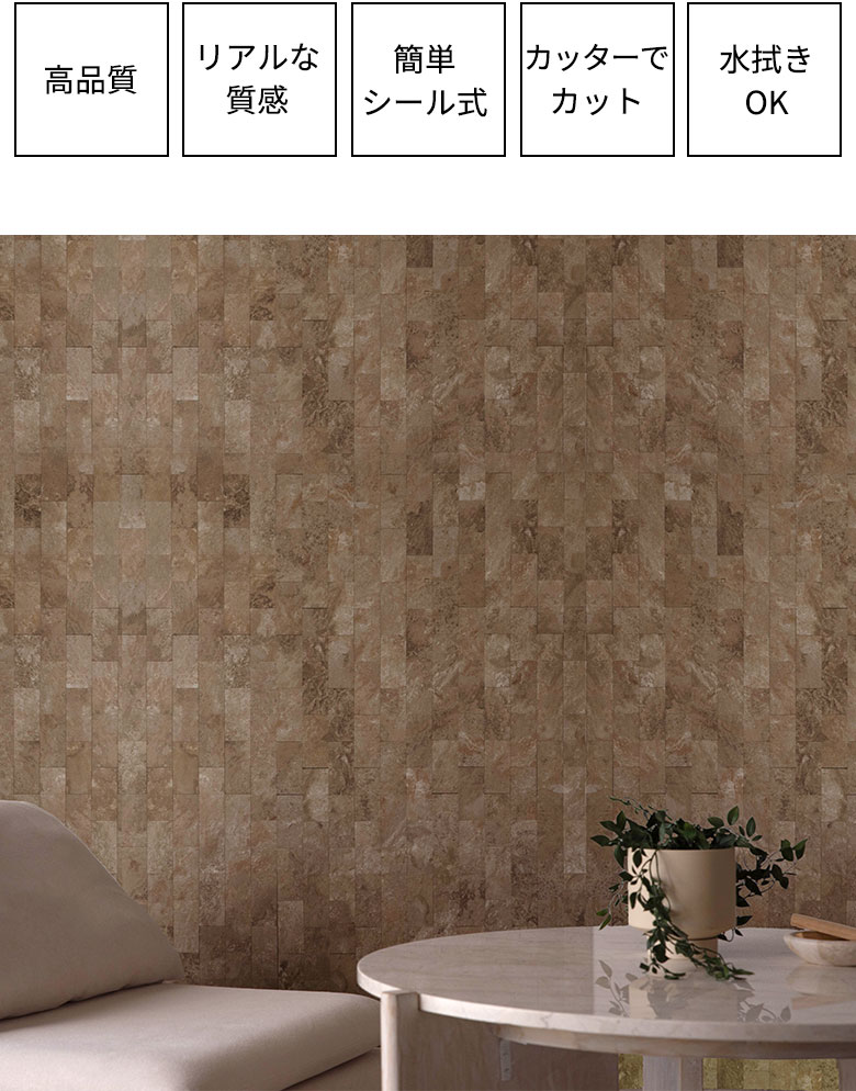 まるで本物の天然石を使用したかのようなリアルな質感が魅力のストーン調タイルシール 貼るだけで壁をリフォームできる、本物のストーンのようなリアルな質感のタイルシール プレミアムタッチ(PREMIUM TOUCH ウォールデコレーションシリーズ)(67204)