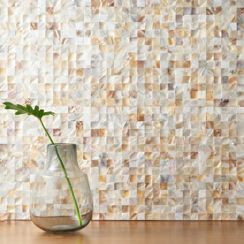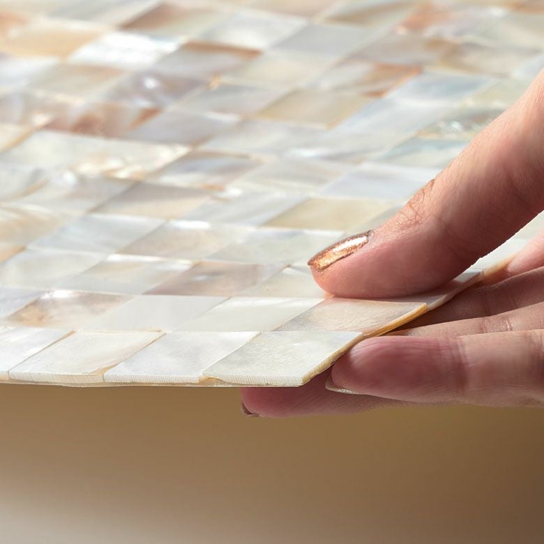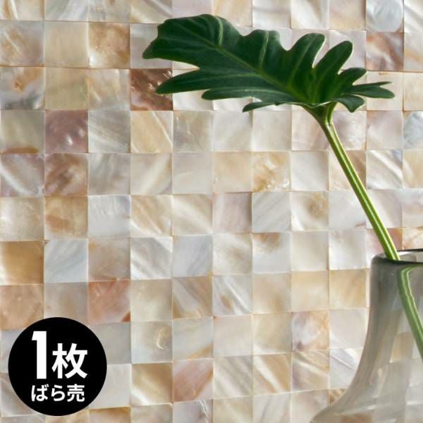 本物のシェル(貝殻)を使用した贅沢なタイルシール。 天然シェルならではのナチュラルで上品な輝きが 空間をラグジュアリーに演出します。 こちらの「ミックス」は、ホワイト~ピンクベージュの 自然のシェルの色を活かしたカラーリング。 天然のシェルならでは美しいグラデーションカラーです。 部分使いでも存在感があり、魅力的な空間に早変わり。 シール状なので、台紙をめくって貼り付けるだけ。 のりやボンド等の接着剤や、目地材などは一切必要ありません。 ちょっとしたスペースや小物に貼って、 気軽にデコレーションできるDIYアイテムです。 種類いろいろ!タイルシール一覧へ >