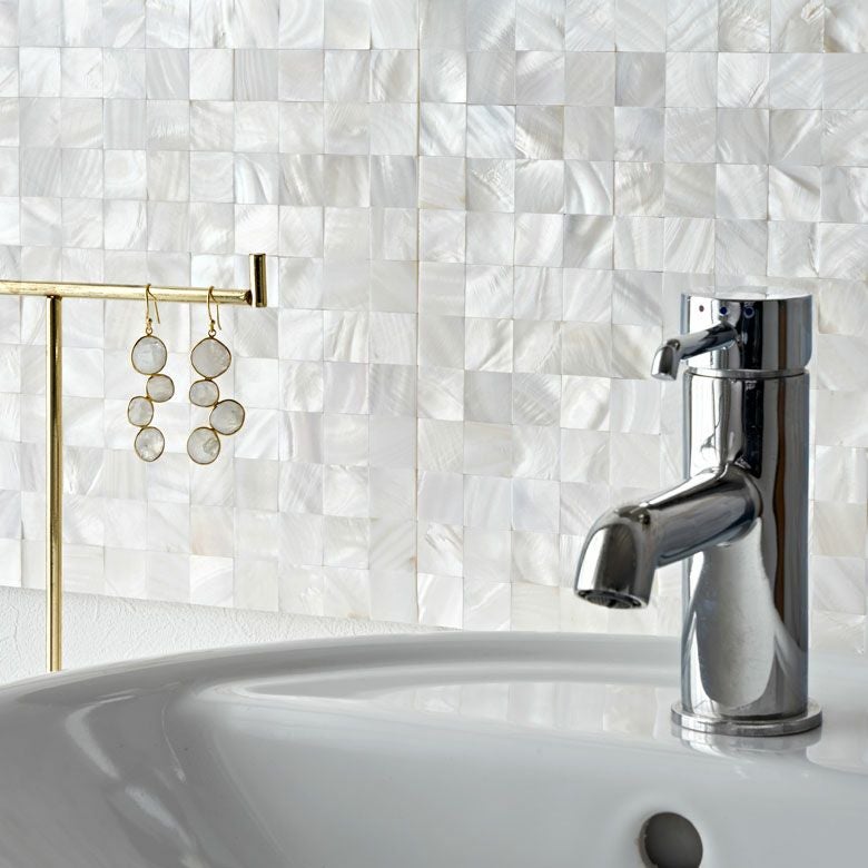 モザイクタイルシール 天然シェル【ホワイトカラー】