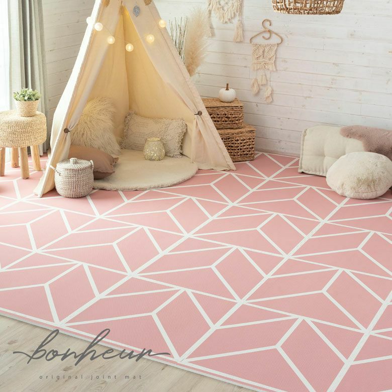マット カーペット ジョイント 子供 キッズ 衝撃吸収 かわいい ジョイントマット プレイマット 約 W 60cm D 60cm H 1.2cm フロア マット ベビー 赤ちゃん モーヴピンク [84083-mp]【 Bonheur ボヌール ニュアンスカラー 幼児 子供 キッズ 厚手 大判 正方形 防音 床 キズ防止 撥水 子供部屋 北欧 シャビーシック おしゃれ EVA 西海岸風 】