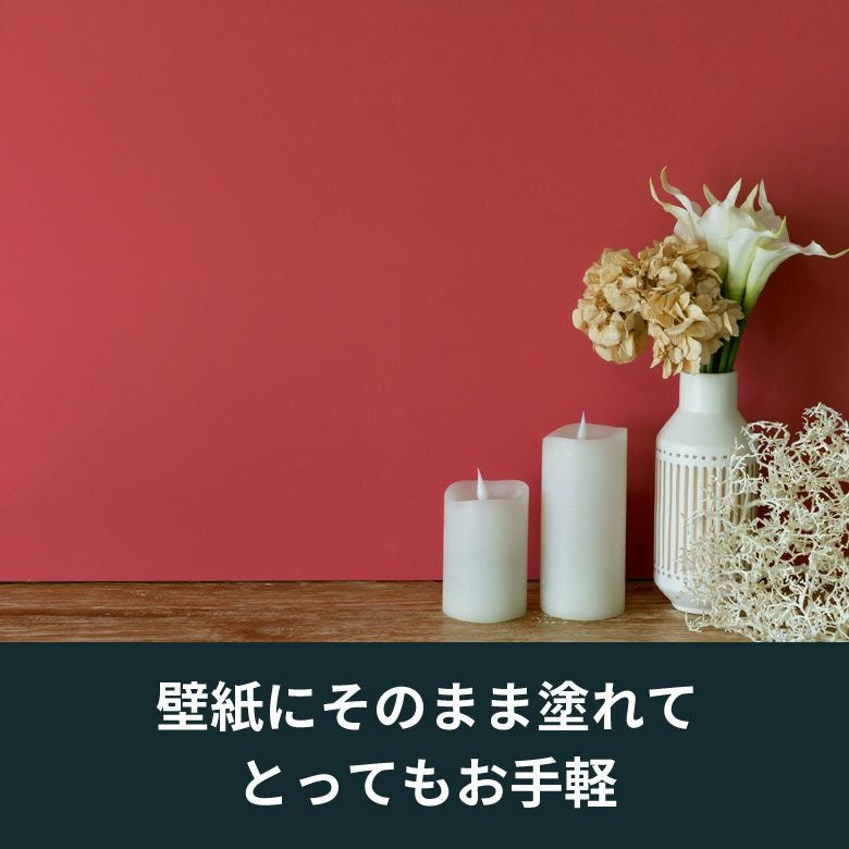 お部屋の印象を変えたいけど、壁紙を張り替えるのは大変… という方にとってもおすすめ! 壁紙の上から直接塗れて、自分らしいインテリア空間を簡単に実現。