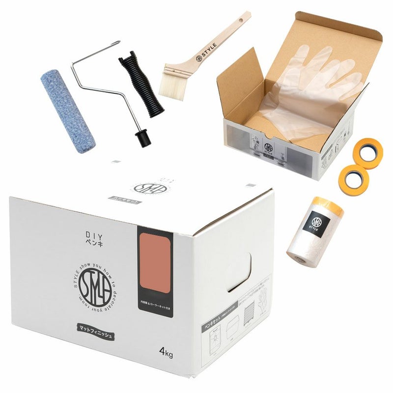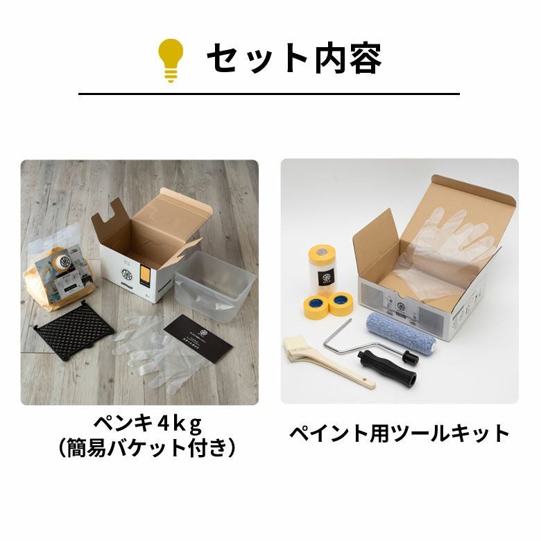 こちらは、 水性ペンキ[ウォームカラー 単品4kg] + ペイント用ツールセットのページです。