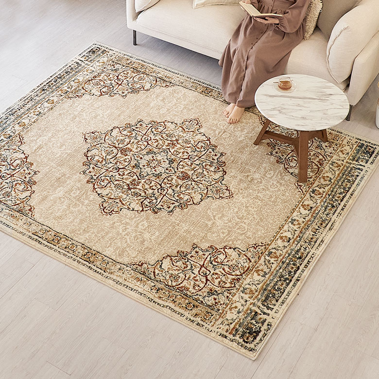 ホットカーペット 床暖房 可 エジプトラグ デザインラグ 約 2畳 敷物 ベッドルーム ヴィンテージ風 模様替え ワンルーム 一人暮らし 新生活 円形ラグ アンティーク風 オリエンタル ラグ ラグマット ウィルトン織 フラワー エレガント 花 エジプト製 約 200×200cm 円形 約 W 200cm D 200cm H 1cm 絨毯 マット カーペット ペルシャ ペルシャ絨毯風 ペルシャ風 オールシーズン 春 夏 秋 冬 リビング おしゃれ 北欧 リゾート インテリア 西海岸[eg84284]