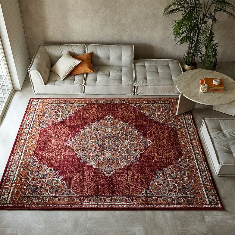 ラグ 柄物 デザイン 約1.5畳 2畳 3畳 リビング ダイニング 寝室 ラグ ラグマット 約 130×190cm エジプト製 ペルシャ 絨毯風 抽象 アート ウィルトン織り アンティーク風 [eg84220-rd]【 絨毯 じゅうたん カーペット おしゃれ センターラグ リビング マット 敷物 長方形 ヴィンテージ風 アブストラクト 春 夏 秋 冬 アジアン 】
